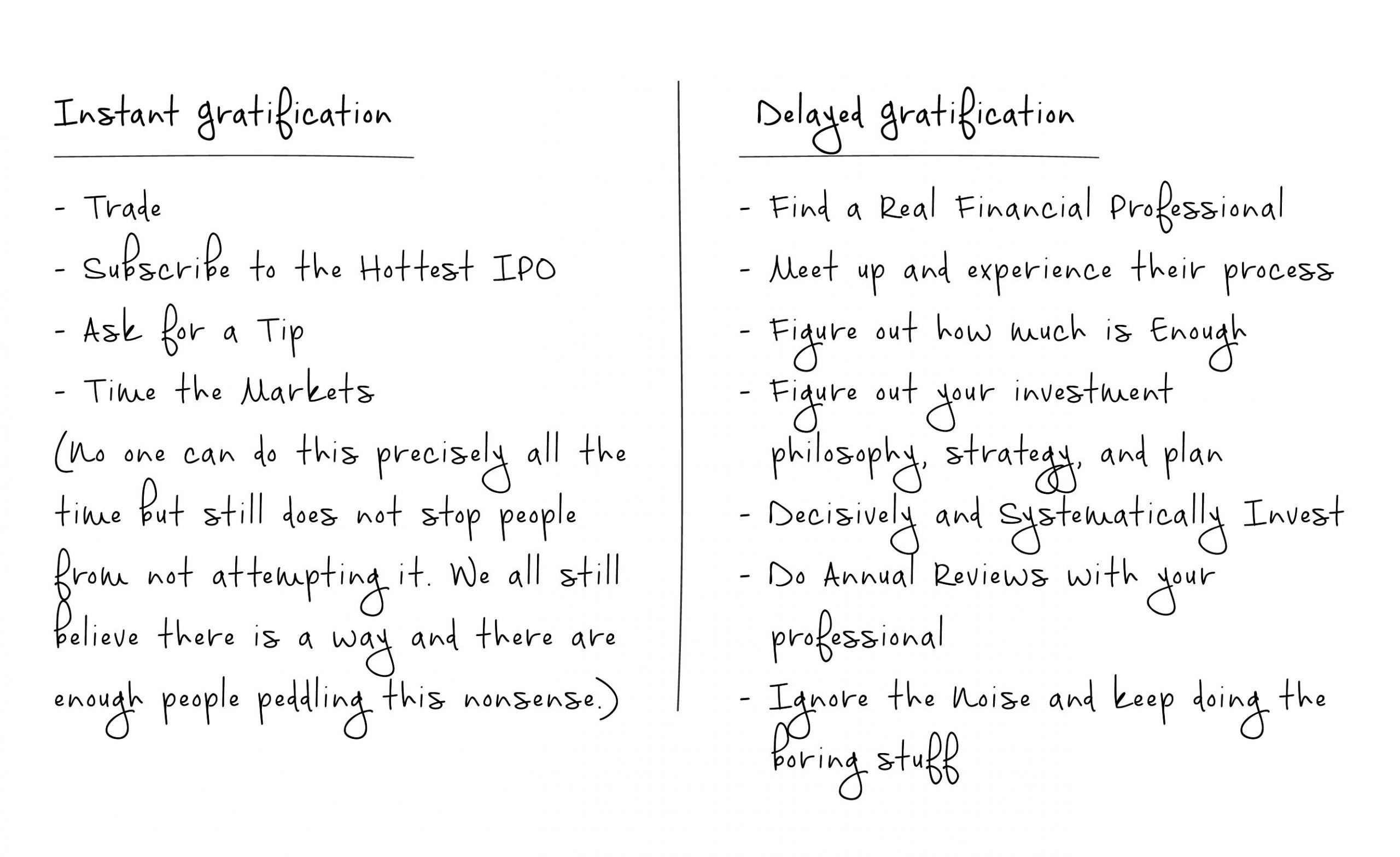 Implementing a Delayed Gratification Strategy (not only in investing but in everything we do) is like getting compounding to work for us.