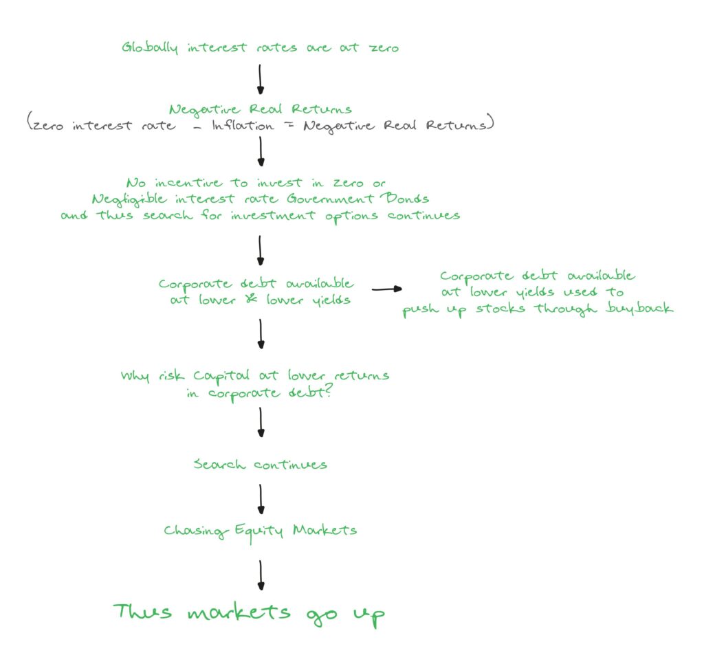 This is a common question on everyone’s mind. Why are the markets rallying around the world despite all the bad news? Well there are many reasons such as injection of enormous fiscal and monetary stimulus by governments worldwide, markets look for signs of recovery (are forward looking) and many others. My intent is not to write a thesis on this but to give you a quick visual representation of the situation.