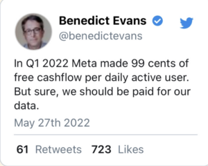 Reality: Your data is pretty worthless. One of the smartest companies in the world is able to make $0.99 in a quarter. How much do you think you will be able to make with your data?