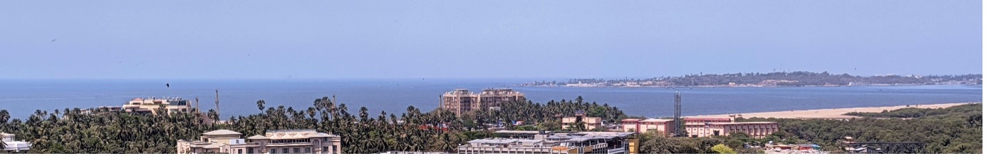 This is an extremely wide-angle photo which I constructed by stitching together 4 separate photos – My camera is incapable of covering this entire span in a single frame. And yet standing at the same spot my unaided eyes can see a far far wider vista than even this composite photo contains.