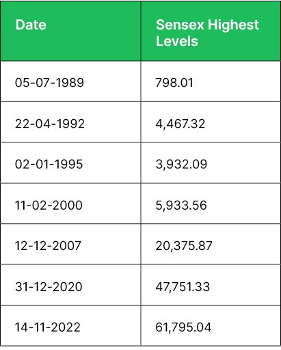 I assume you would have guessed from the headline and the table headings. But let me write it anyway. The date in the first column is the one when the Sensex (the index of the largest 30 stocks) was at the highest level before it started to go down.